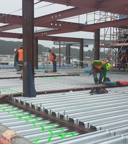 Wellington Studwelders operate a supply and installation service for all metal tray flooring products. Working with Composite Floor Decks Ltd in Auckland who provide engineering backup, welding consumables and detailed shop drawings Wellington Studwelding we can provide a complete package for your project from flooring design and loadings, supply, installation and through deck shear stud welding to create economical composite floor decks.